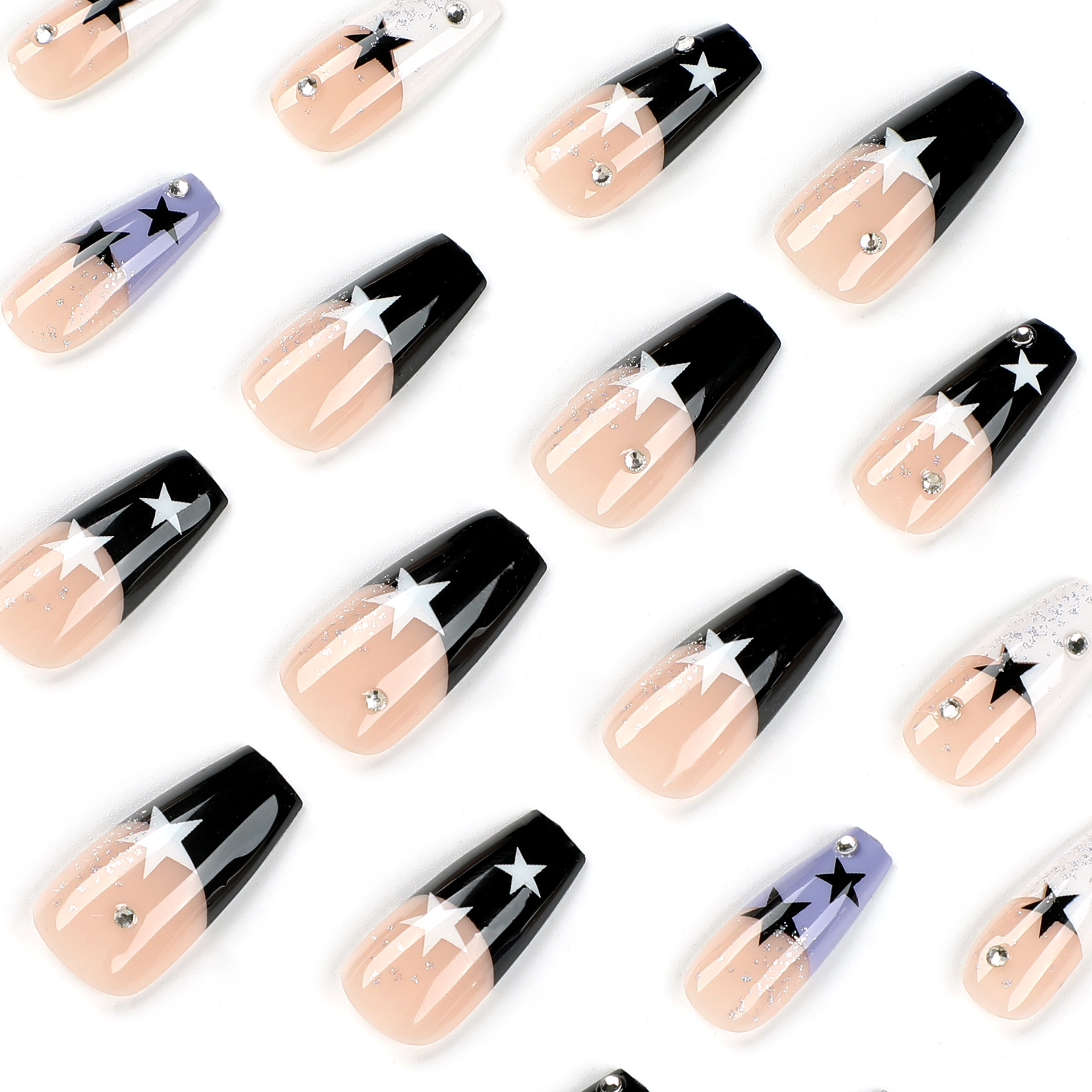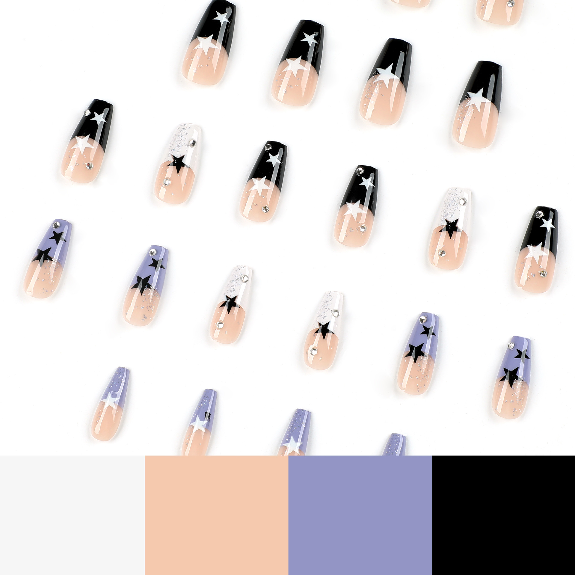 穿戴美甲成品甲片黑白紫三色法式水钻黑白星星ins风穿戴甲指甲片穿戴美甲成品甲片黑白紫三色法式水钻黑白星星ins风穿戴甲指甲片