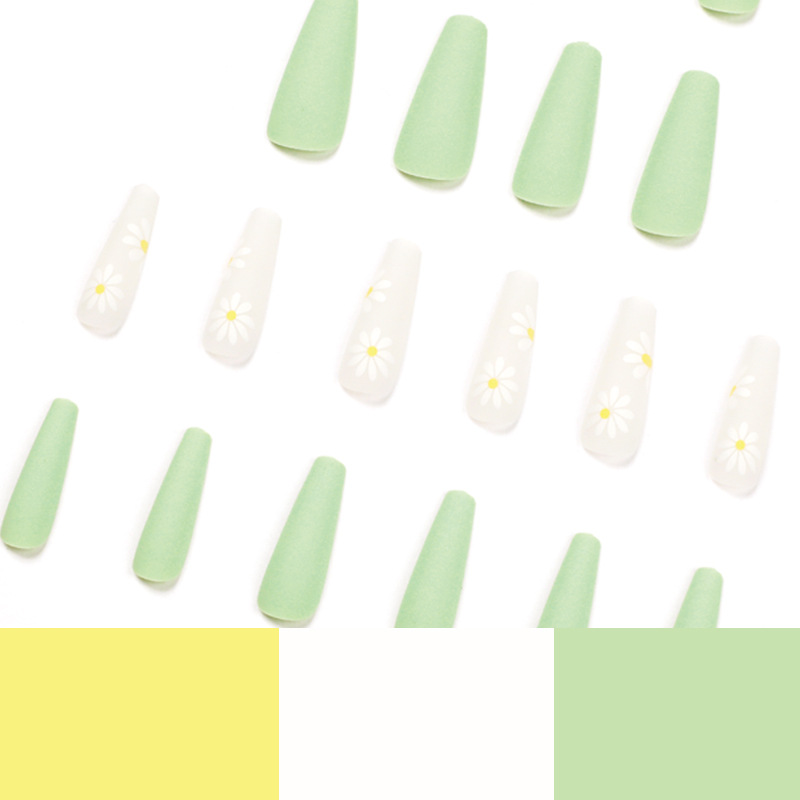 / 美甲甲片批发绿色磨砂穿戴甲长款清新小花穿戴美甲甲贴成品可拆卸