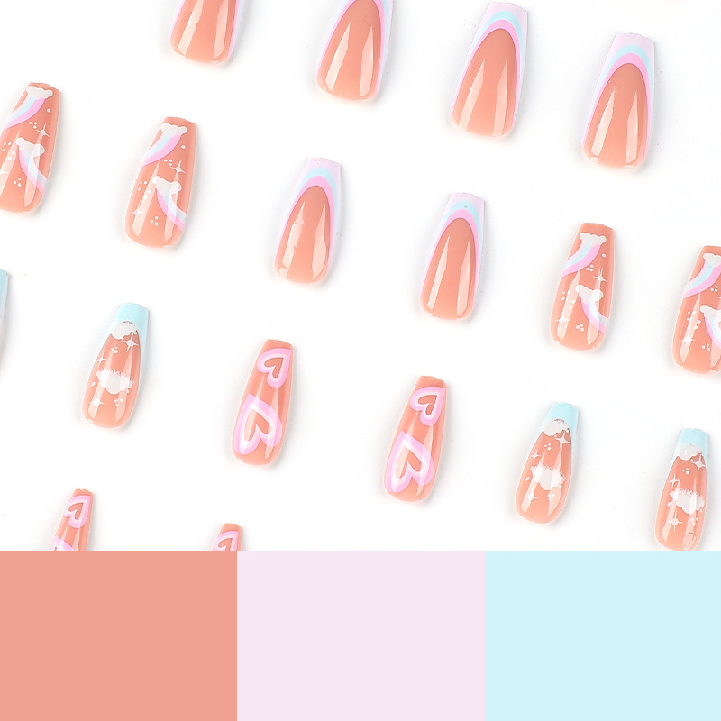 / 美甲甲片批发蓝粉拼接法式彩虹白色云朵星芒粉色镂空爱心甲片成品