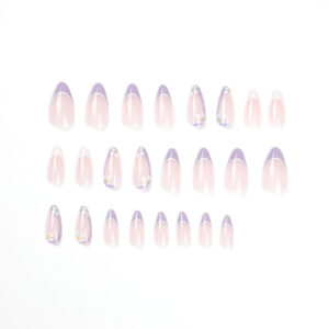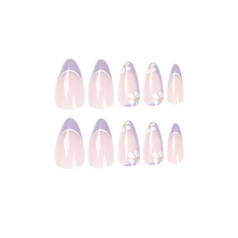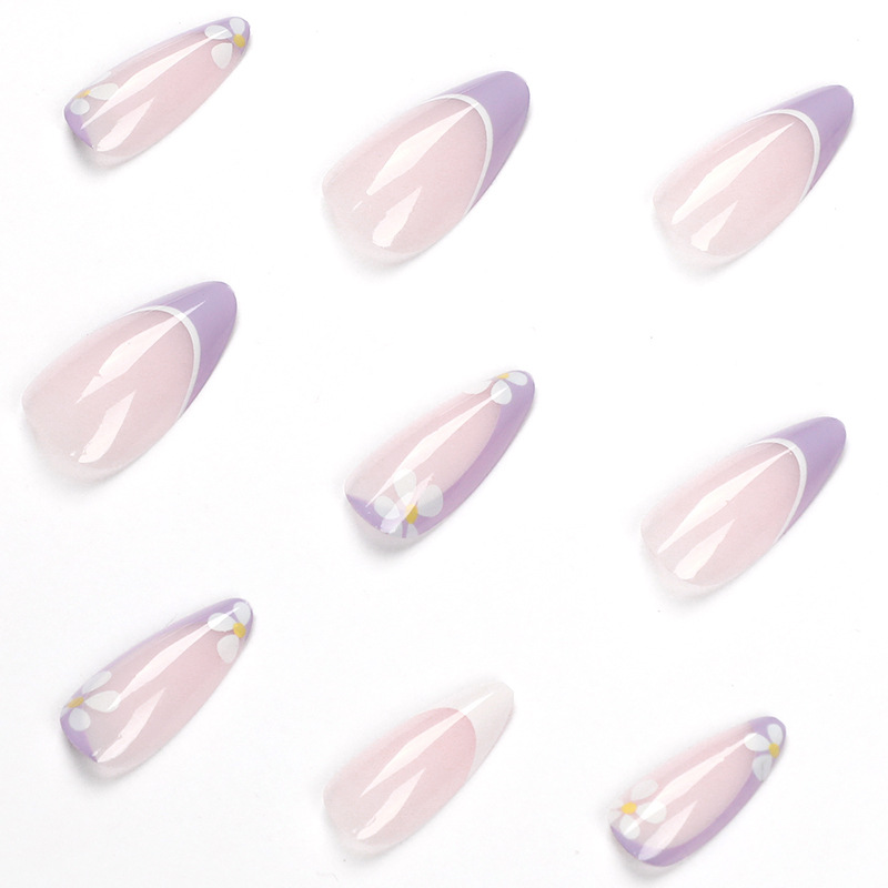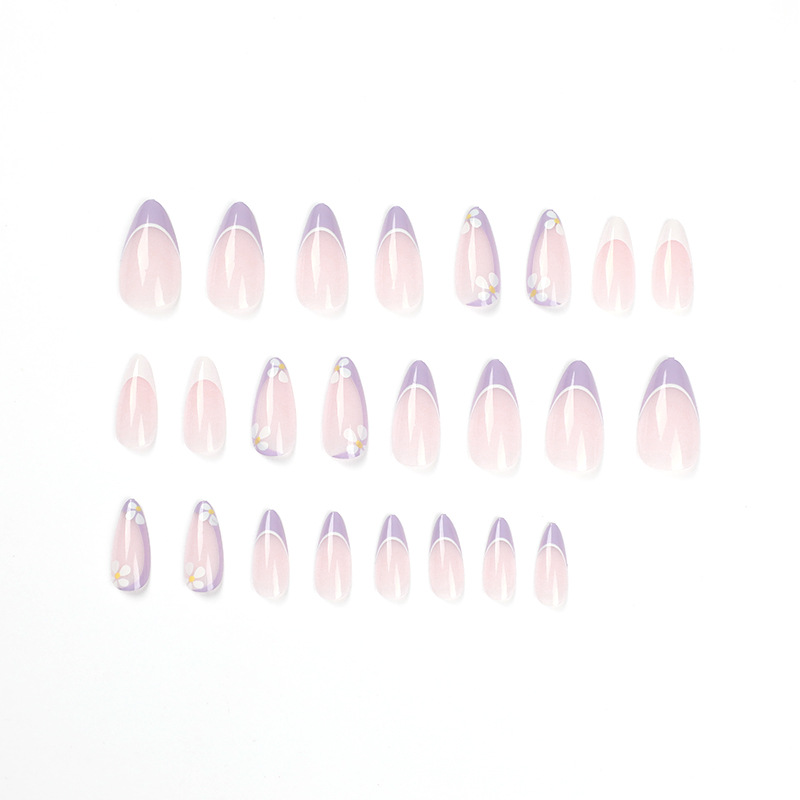 / 美甲穿戴甲批发简约风紫白边小花美甲贴片成品甲片批发指甲贴片