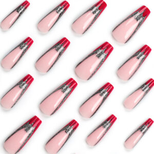 闪粉暗黑蝙蝠穿戴甲片红边美甲欧美跨境美甲可拆卸甲片成品批发 数量