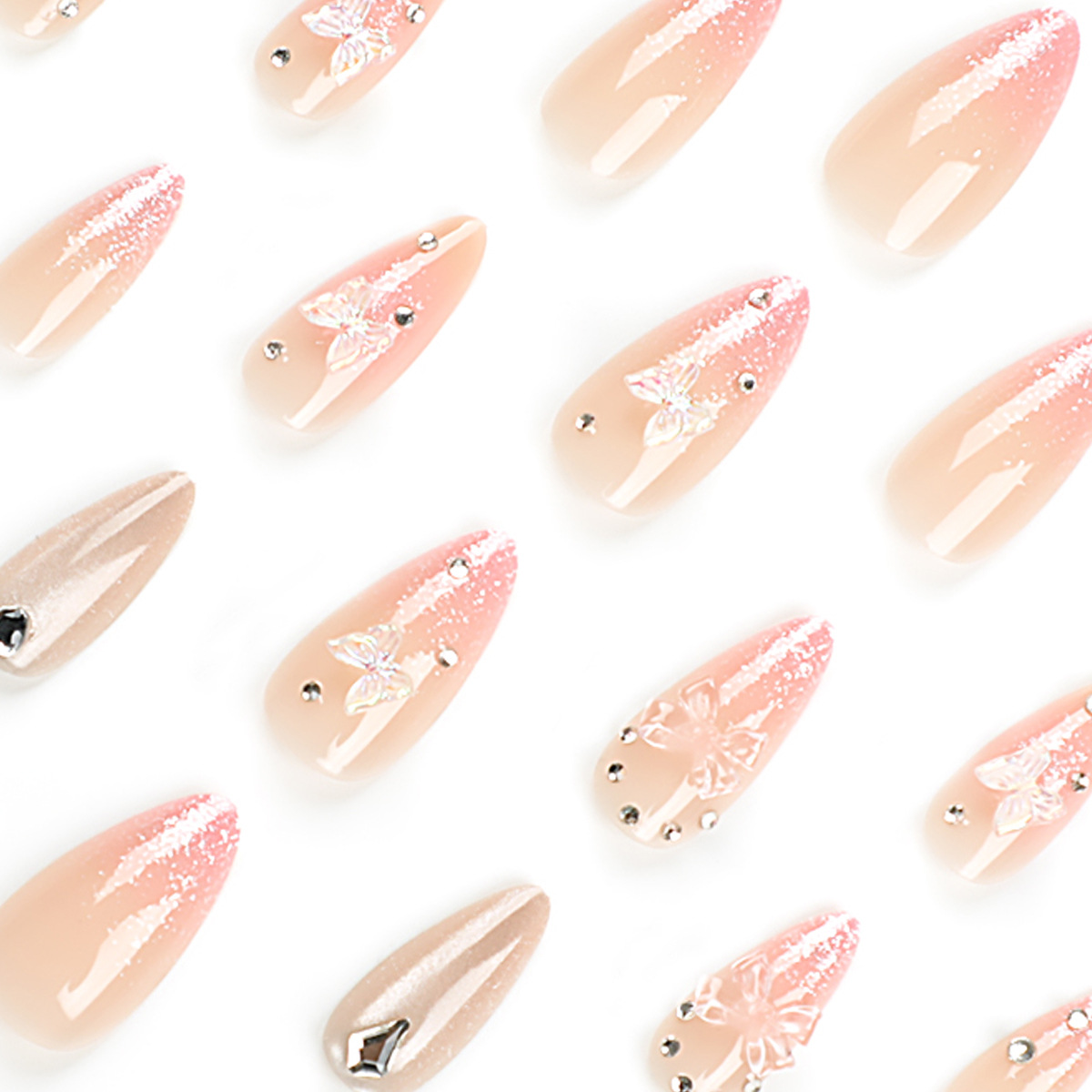 / 闪粉美甲指甲贴蝴蝶穿戴甲美甲片跨境假指甲甲片穿戴甲片成品批发