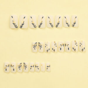 高级玉白色穿戴甲甲片金色蓝色拼接树叶美甲穿戴式指甲贴片批发