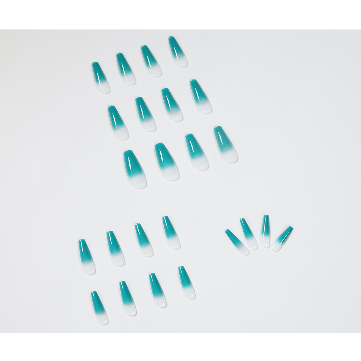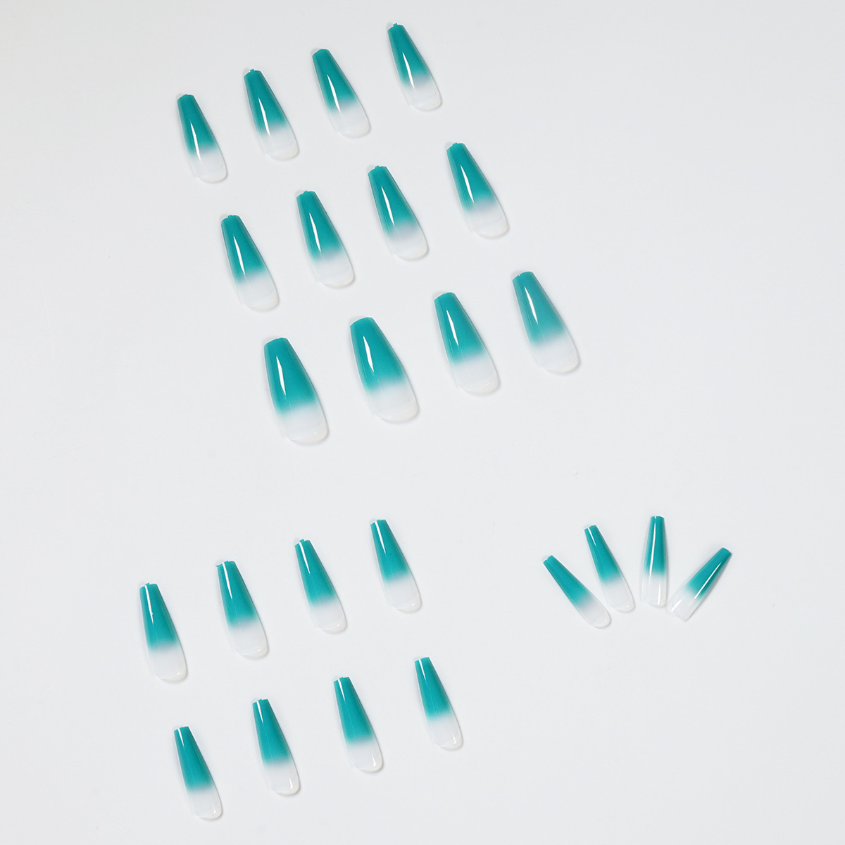 碧水绿渐变长芭蕾穿戴美甲成品假指甲美甲贴片指甲贴片防水可拆卸 数量