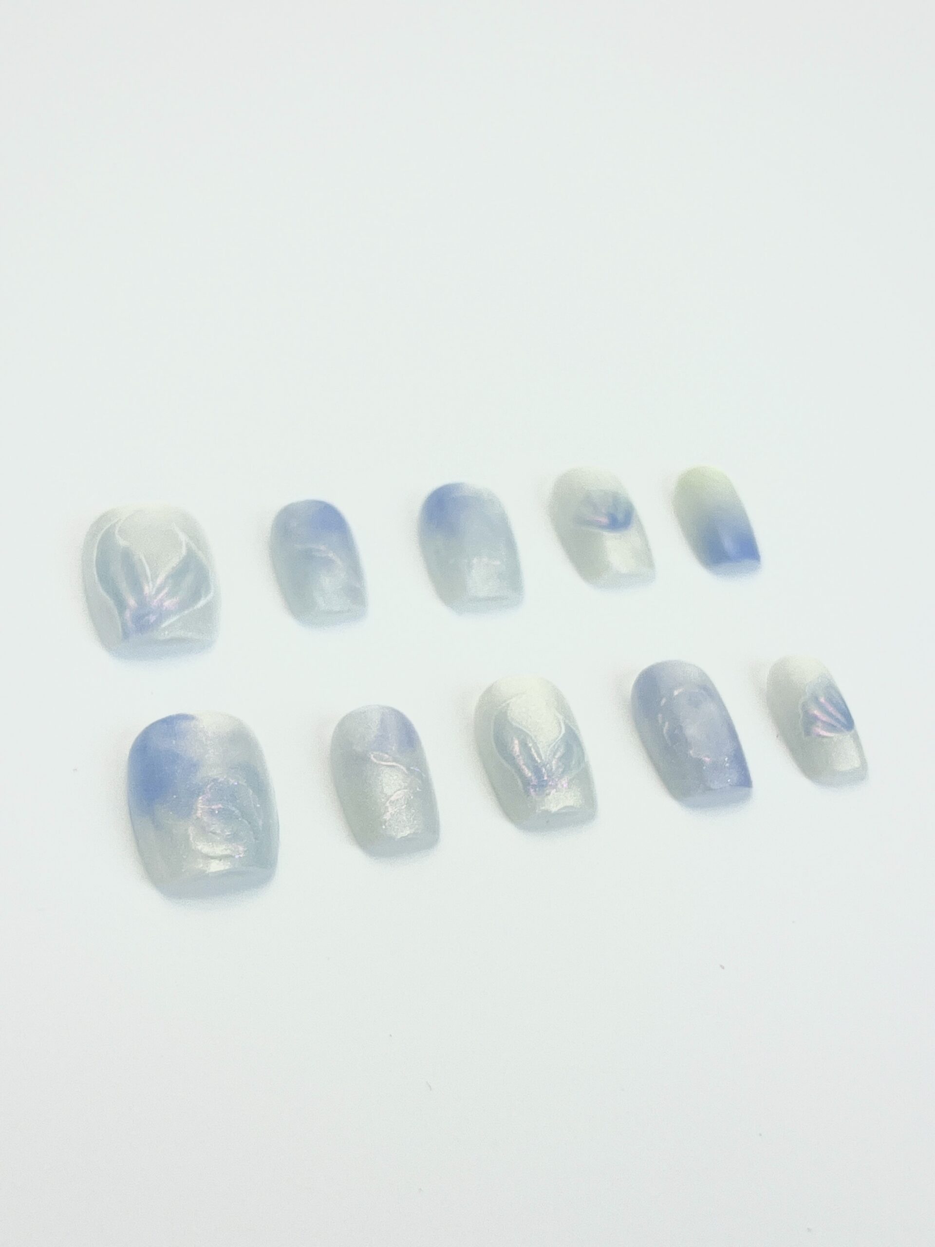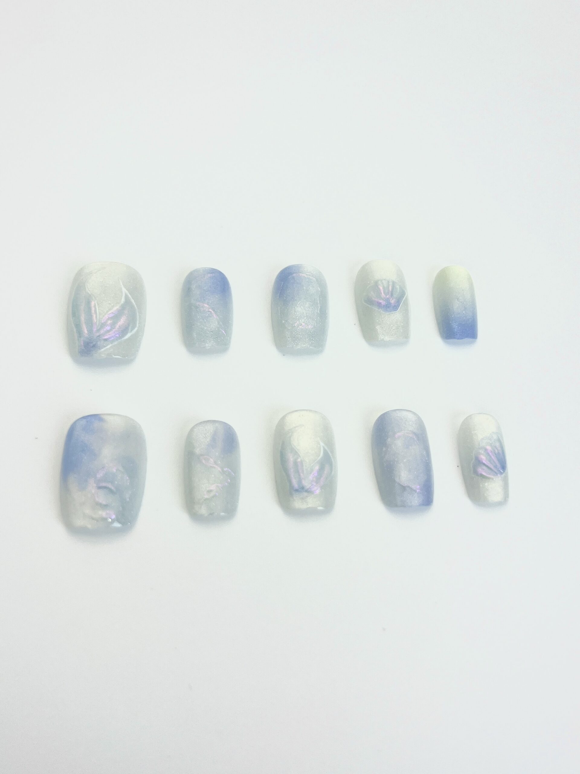 / 蓝白晕染贝壳穿戴甲
