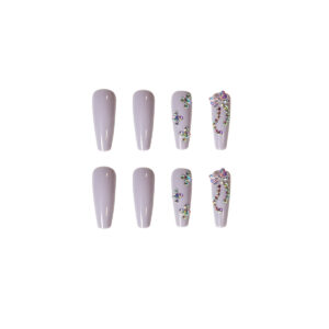 / 奶灰色穿戴甲满钻气质美甲蝴蝶指甲贴片欧美跨境穿戴甲批发nails