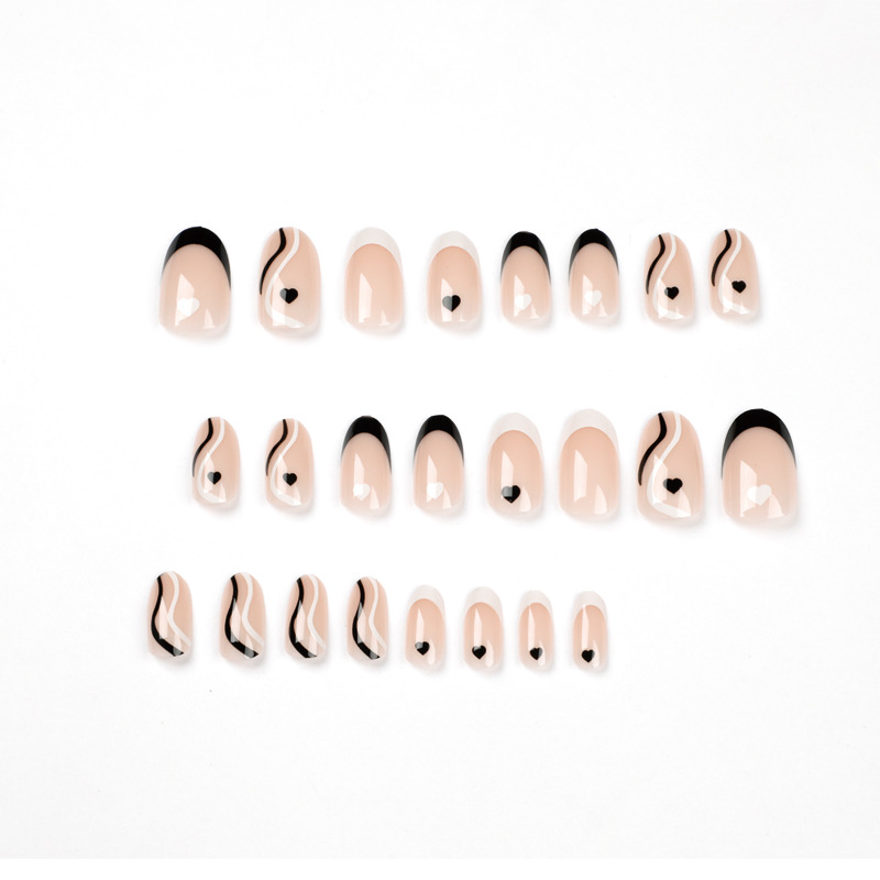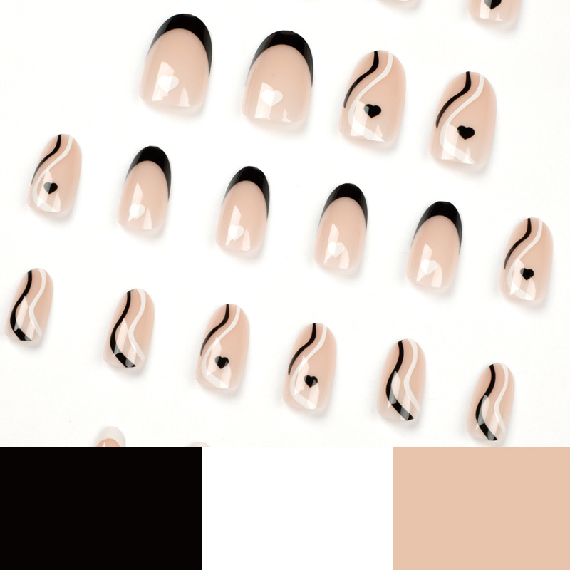 / 美甲甲片穿戴甲 法式黑白拼色甲片成品批发黑白波浪爱心美甲批发