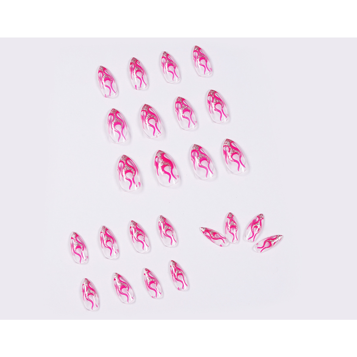 / 玫红金闪火焰穿戴美甲假指甲美甲贴片指甲贴片防水可拆甲片外贸