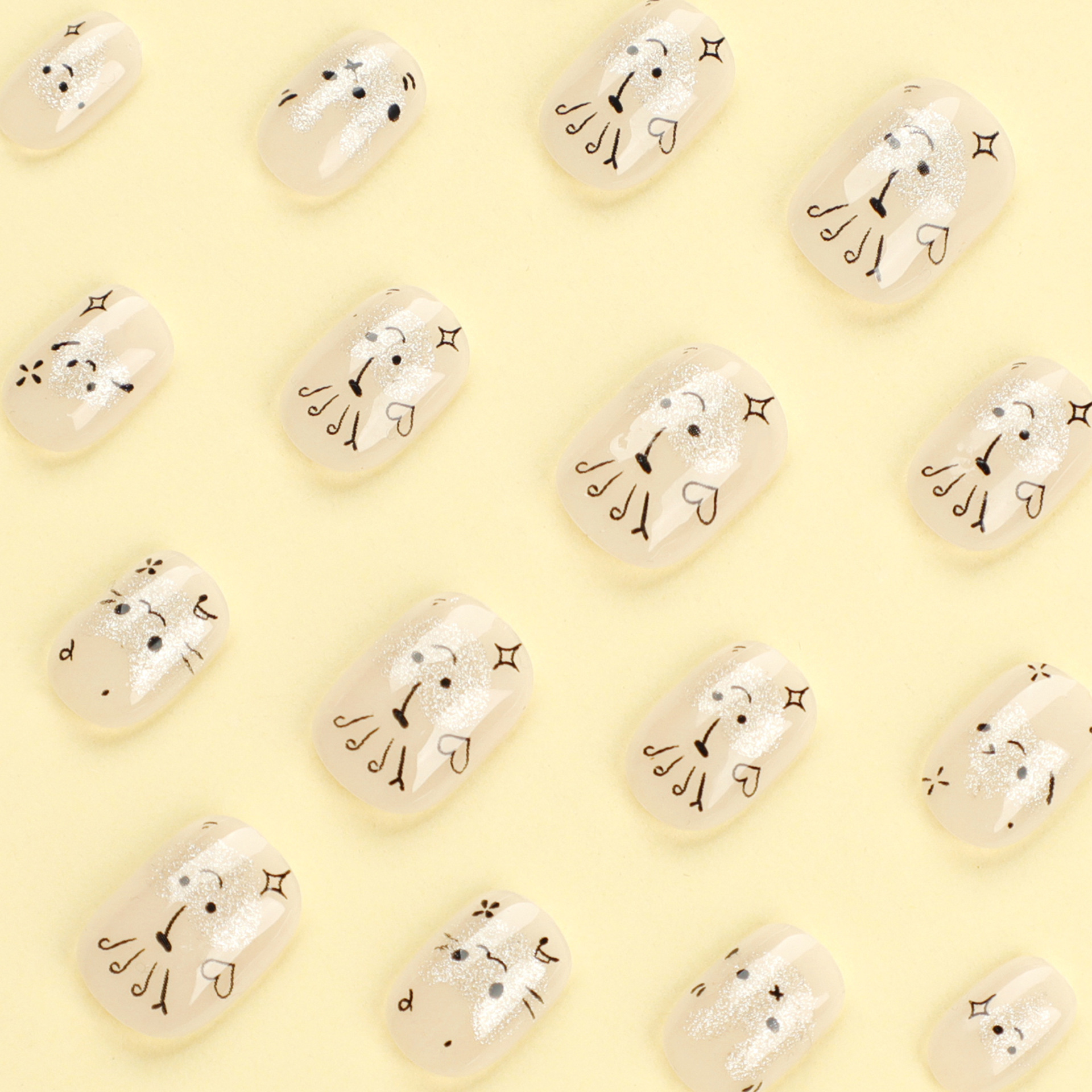 短款MINI甲穿戴甲可爱卡通兔子美甲片星星闪粉爱心甲片指甲片批发