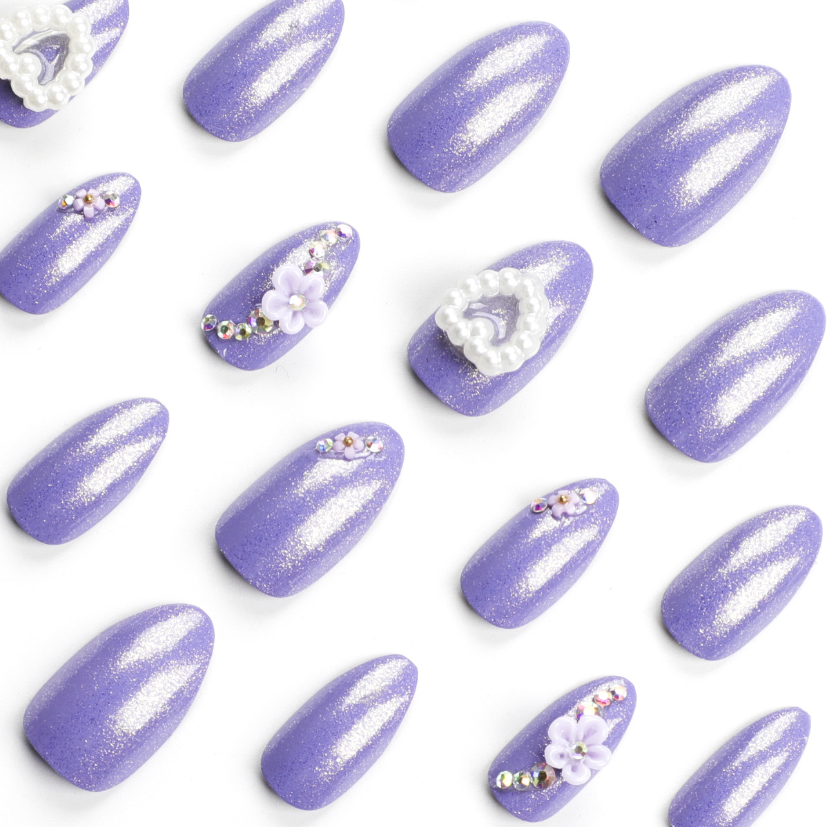 满天星紫杏仁穿戴甲珍珠爱心美甲片白色花朵山茶花甲片假指甲批发