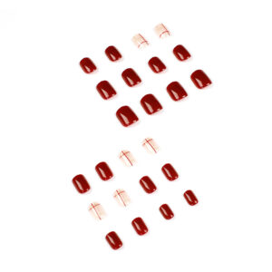 / 穿戴式美甲贴片酒红网格假指甲可拆卸美甲nails 指甲贴片美甲批发