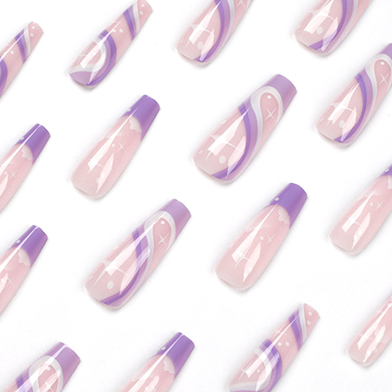 / 穿戴甲美甲紫色线条长芭蕾星月甲片假指甲可拆卸指甲片false nail