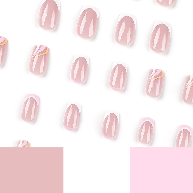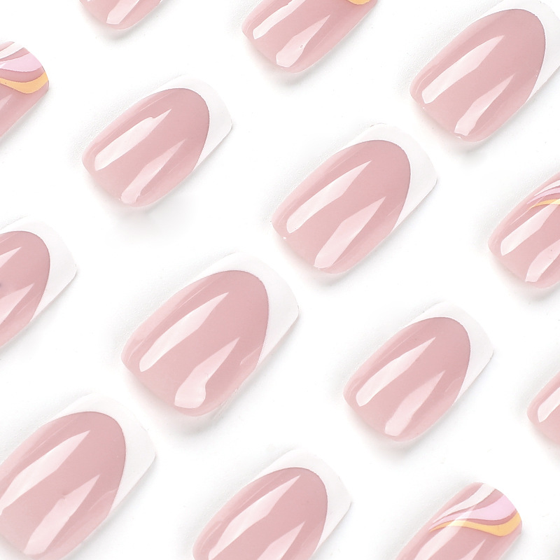 穿戴甲片粉白撞色法式穿戴式指甲贴三色波浪指甲片批发美甲成品