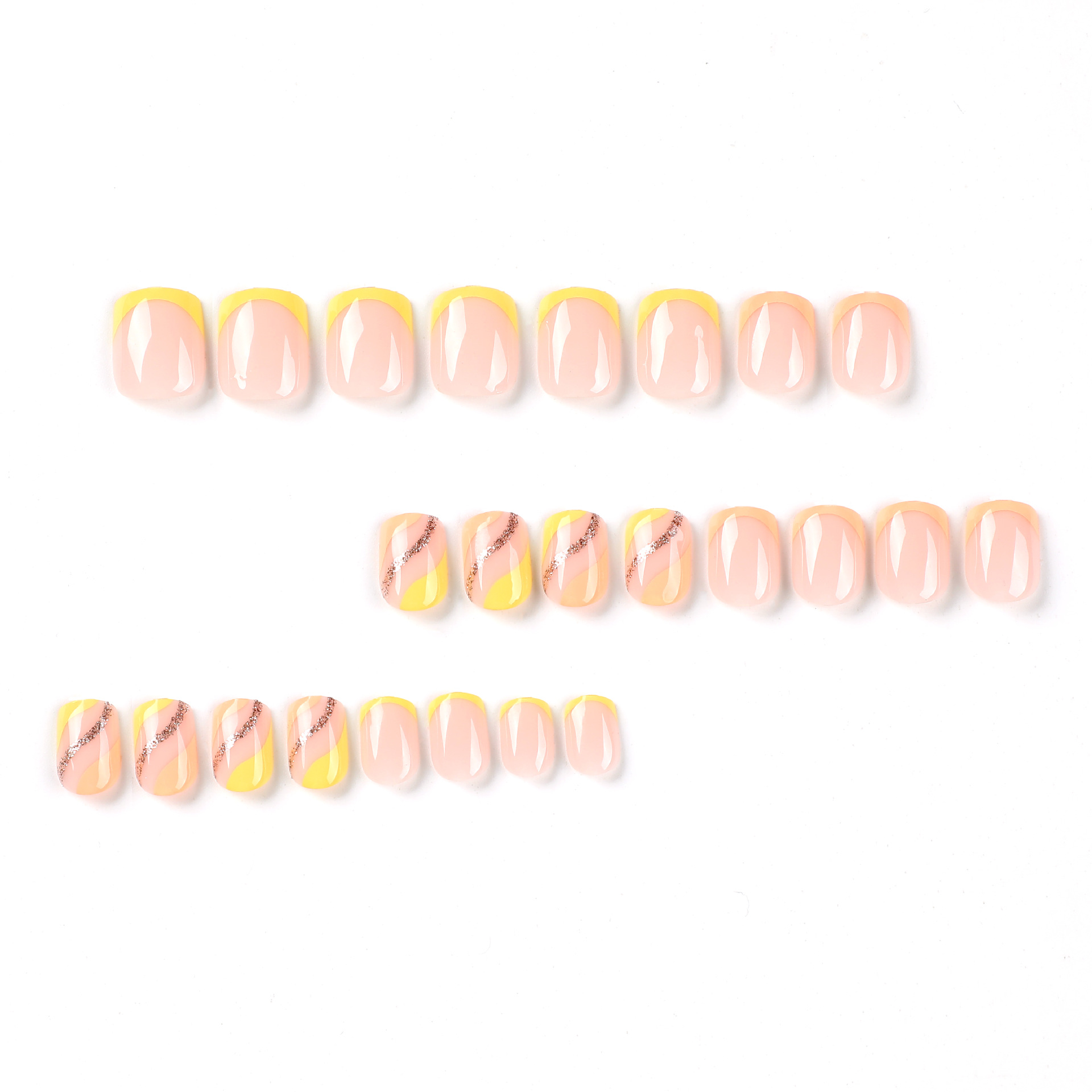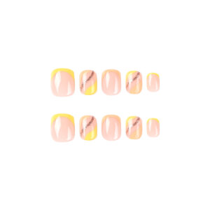 穿戴甲短款甲片黄色法式线条闪粉美甲贴片穿戴甲美甲false nails 数量