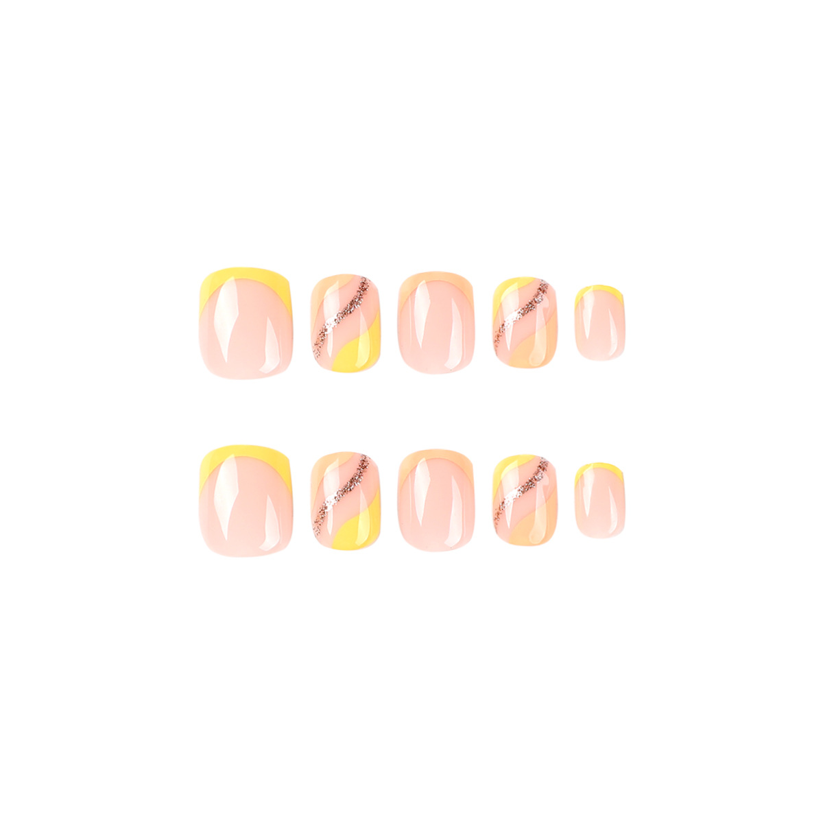 / 穿戴甲短款甲片黄色法式线条闪粉美甲贴片穿戴甲美甲false nails