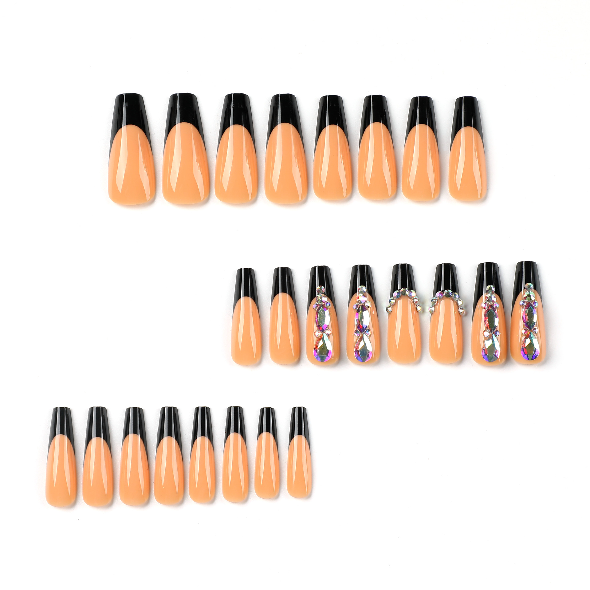 穿戴甲批发黑色法式搭配爆闪水钻穿戴甲 欧美press on nail甲片 数量