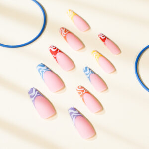 / 假指甲美甲贴片彩虹色波浪美甲false nail跨境直供穿戴甲成品批发
