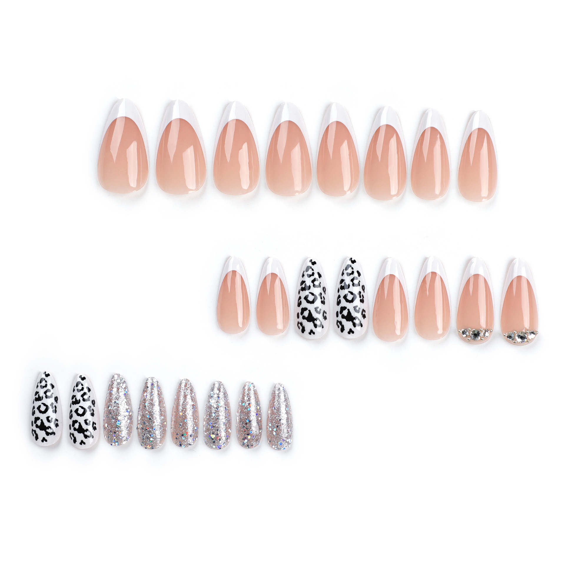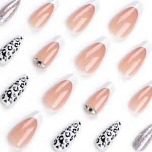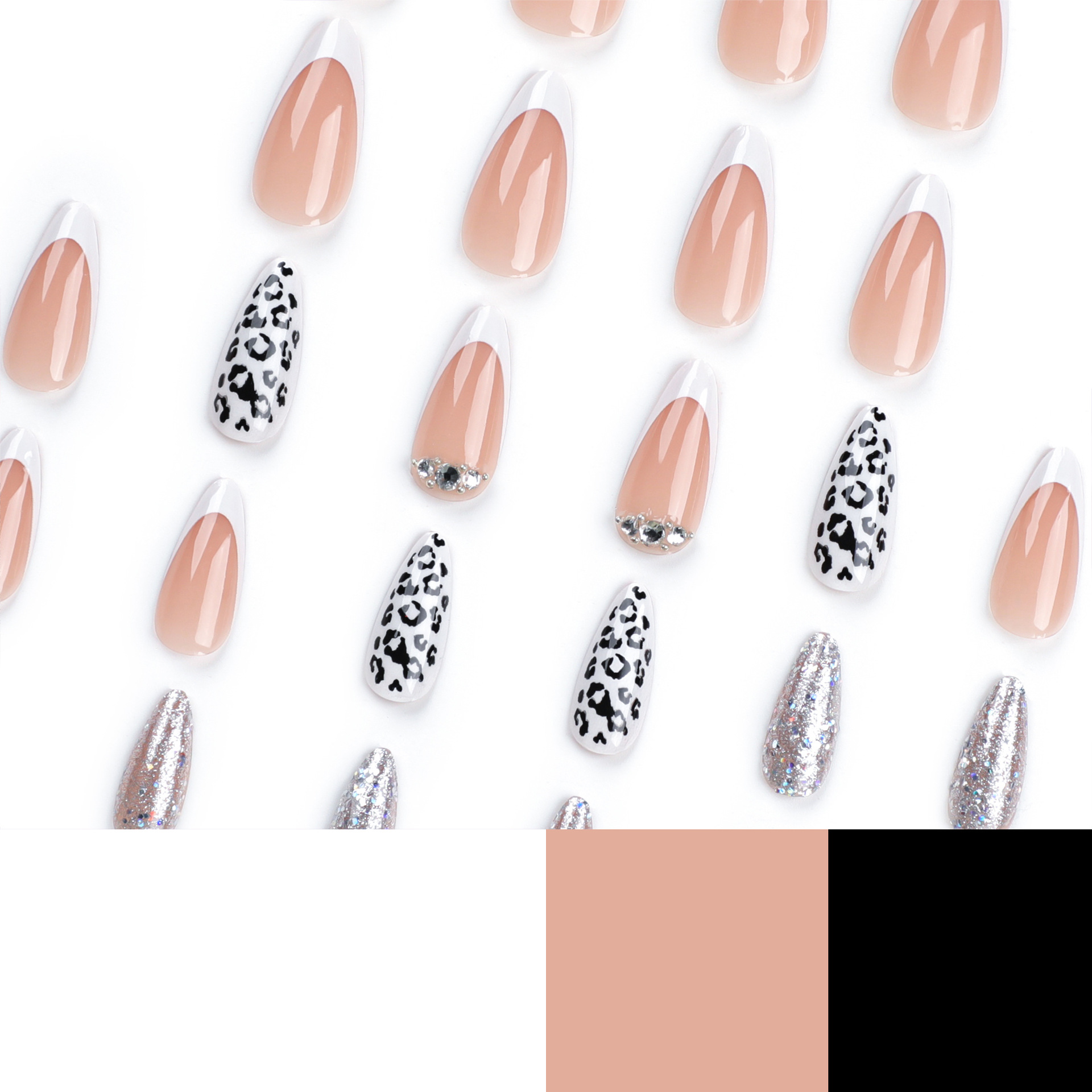 / 厂家直销法式裸色白边穿戴甲豹纹美甲闪粉穿戴式甲片杏仁甲批发