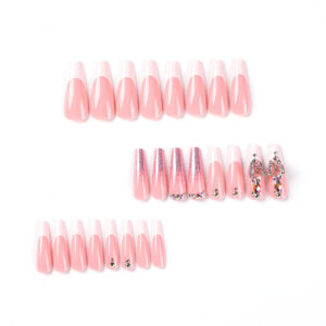 / 可穿戴甲片白色法式紫色闪粉蝴蝶立体水钻