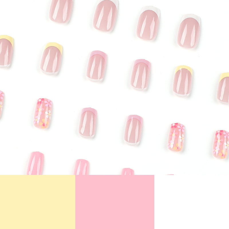 / 可穿戴甲片粉黄色法式美甲片可拆卸多色花朵美甲片美甲成品nails