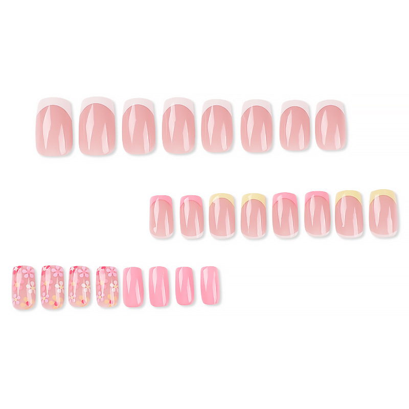可穿戴甲片粉黄色法式美甲片可拆卸多色花朵美甲片美甲成品nails quantidade