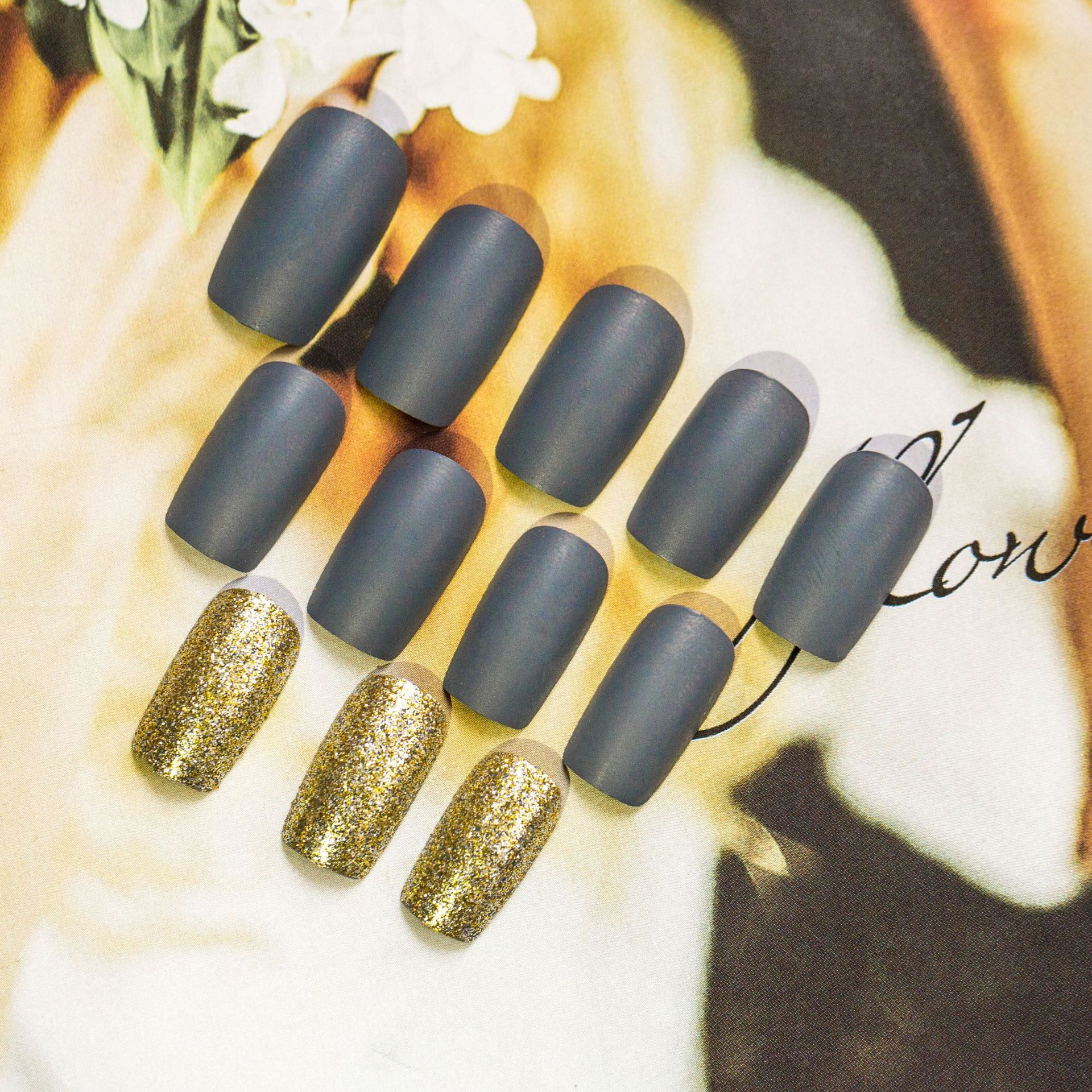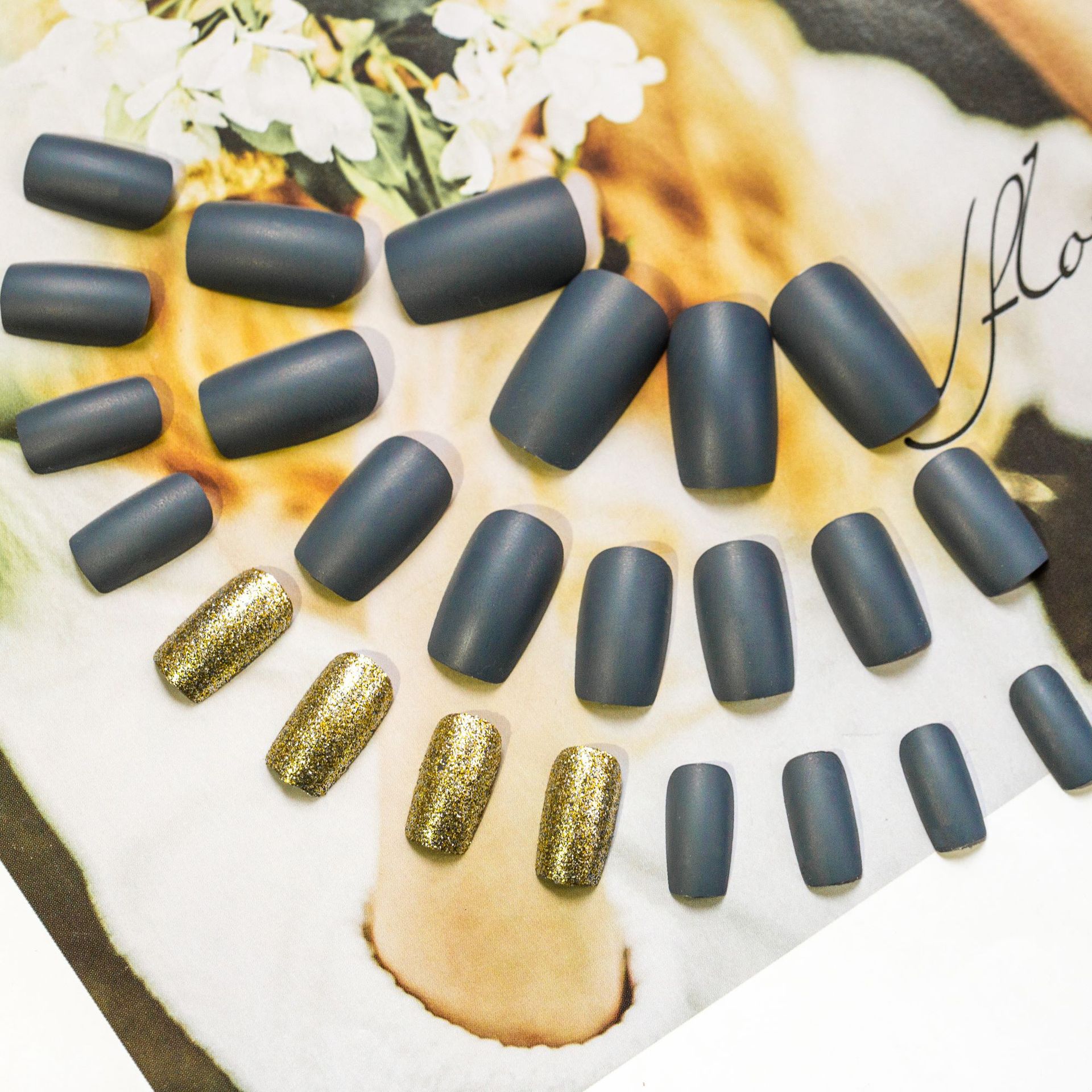性冷淡个性谧蓝显白美甲贴片穿戴甲成品假指甲孕妇防水可拆卸甲片 quantidade