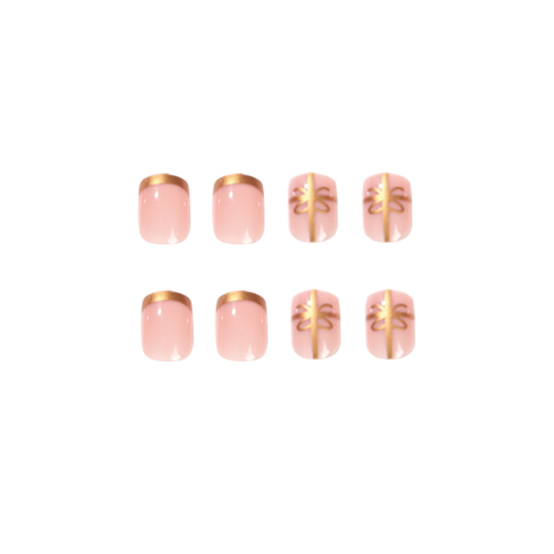 / 指甲贴片圣诞款法式金线蝴蝶结穿戴甲甲片批发甲片 press on nail