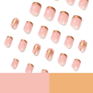 指甲贴片圣诞款法式金线蝴蝶结穿戴甲甲片批发甲片 press on nail quantidade