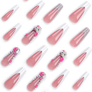 法式白边美甲指甲贴片欧美闪钻穿戴甲甲片批发指甲片长款美甲片 quantidade
