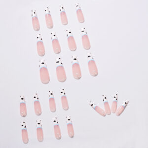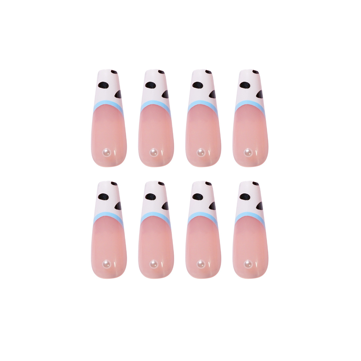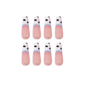 牛奶纹长芭蕾珍珠穿戴美甲成品可拆卸假指甲美甲贴片指甲贴片 quantidade