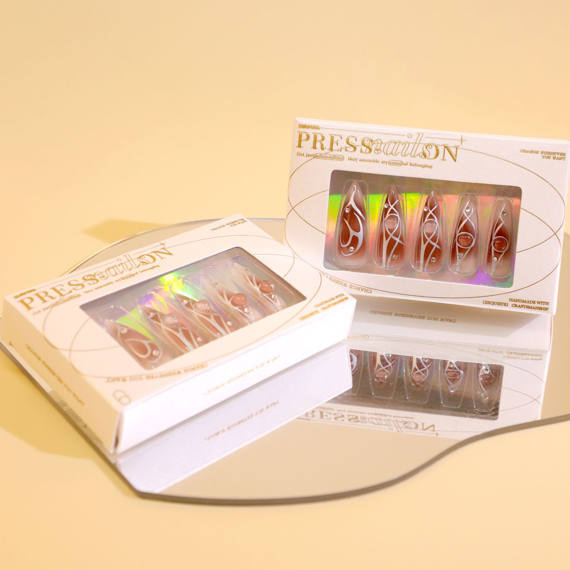 秋冬显白y2k穿戴甲甲片美拉德棕色晕染美甲片小红书风假指甲批发 quantidade