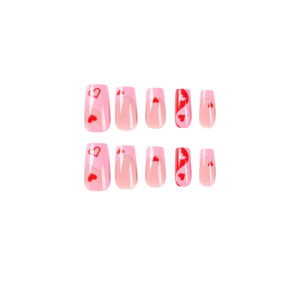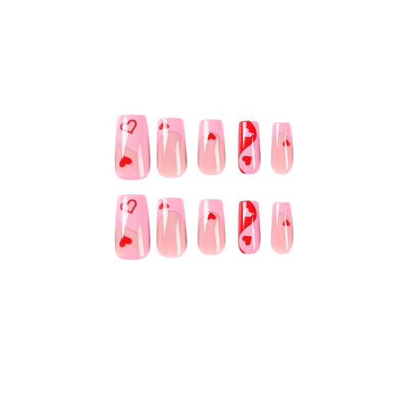 Wear Nail Nail Patch Manicure para o Dia dos Namorados French Pink Edge Small Heart Nail Patch Wear Nail Unhas removíveis