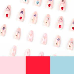 / 穿戴甲甲片批发粉色棋盘格指甲贴片批发多色笑脸爱心云朵甲片批发