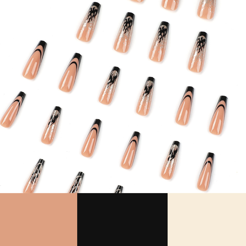 Wear Nail Nail Pieces Wholesale Black Edge French Flame Gold Powder Fake Nail Pieces Wholesale Nail Pieces Wholesale Nail Art Finished Products