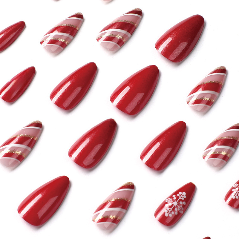 穿戴甲 法式红边白色雪花圣诞款美甲穿戴甲批发穿戴甲秋冬 nails