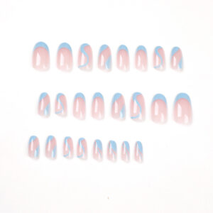 穿戴甲 法式蓝波浪甲贴成品可拆卸美甲甲片批发成品假指甲nails quantidade