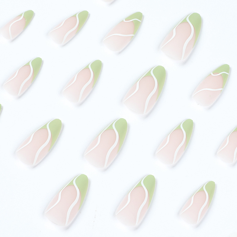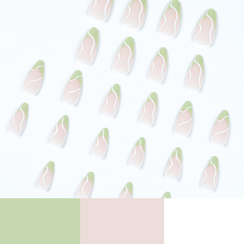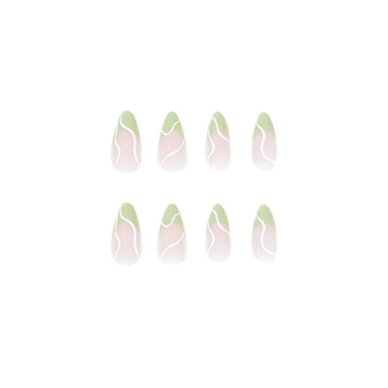 / 穿戴美甲成品批发磨砂绿边法式穿戴甲白色波浪甲片穿戴甲 nails