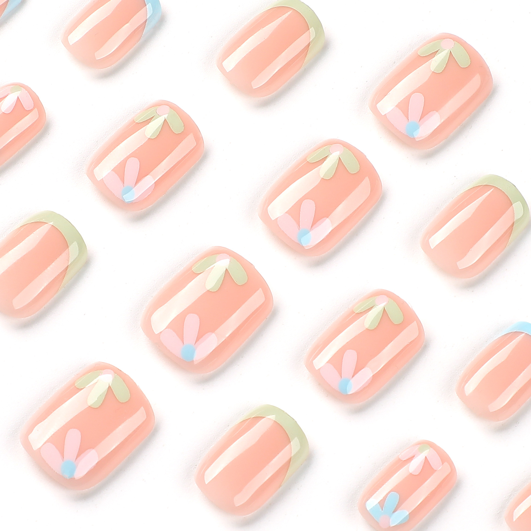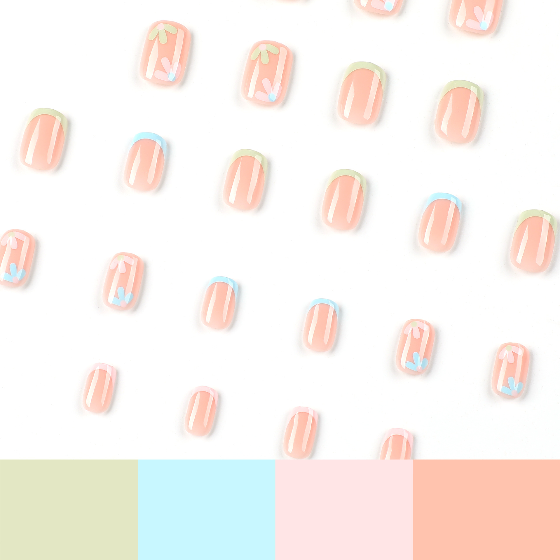 穿戴美甲清新三色法式花朵美甲甲片穿戴甲甲片成品press on nails quantidade