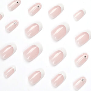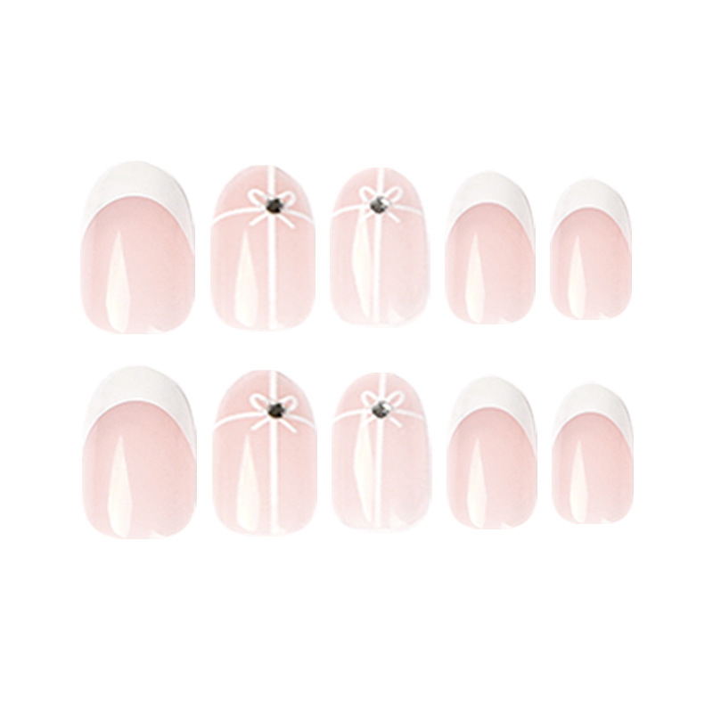 穿戴美甲穿戴甲片白色简约法式小花穿戴式美甲假指甲false nail
