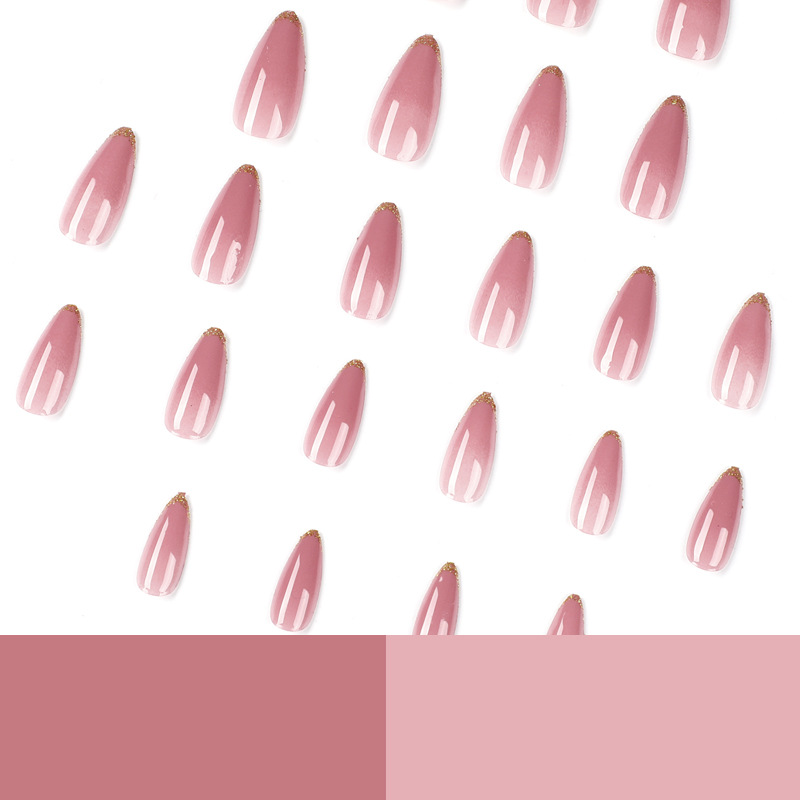 穿戴美甲裸粉色法式金边闪粉穿戴美甲成品批发 press on nails quantidade