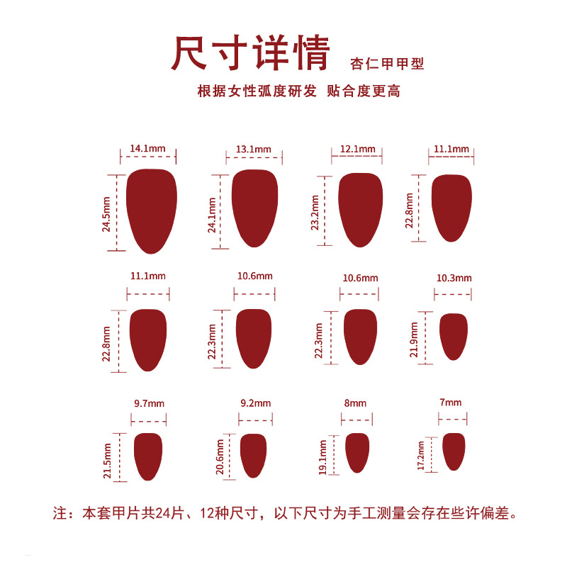 简约甜美杏仁甲穿戴甲法式白边樱桃蝴蝶结美甲新款情人节美甲片