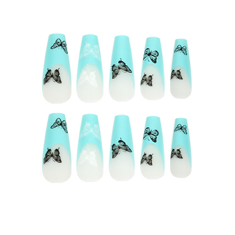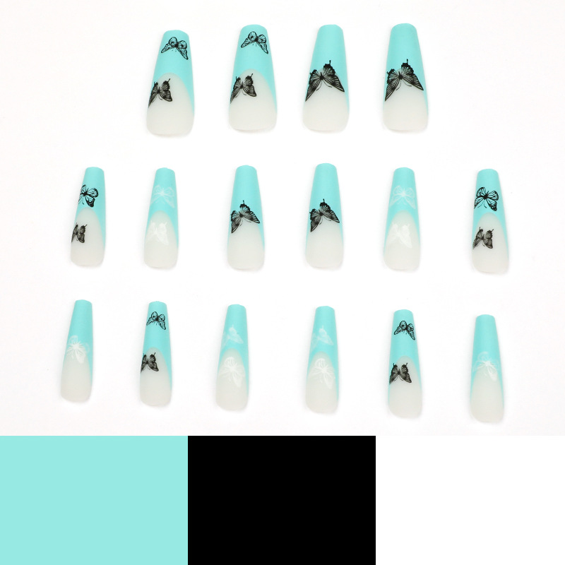 绿色长芭蕾黑蝴蝶穿戴甲批发假指甲指甲贴可拆卸甲片指甲片甲片