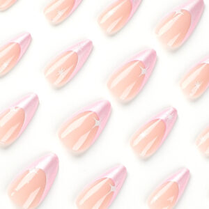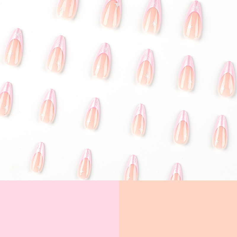 美甲片可拆卸粉色珠光粉法式指甲贴片白色星芒美甲片甲片美甲成品