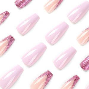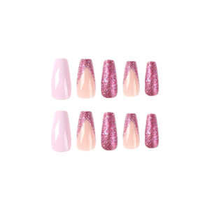 美甲片 穿戴式紫色闪粉法式美甲成品假指甲美甲片 press on nails