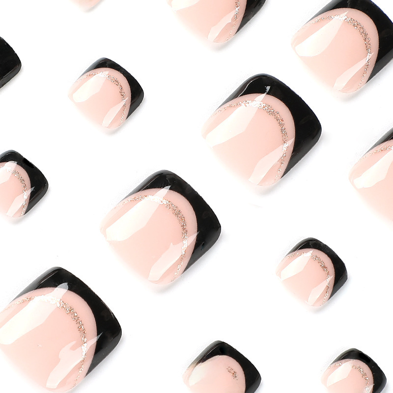 美甲甲片黑色法式脚甲片金色闪粉线条美脚指甲片指甲贴可拆卸甲片