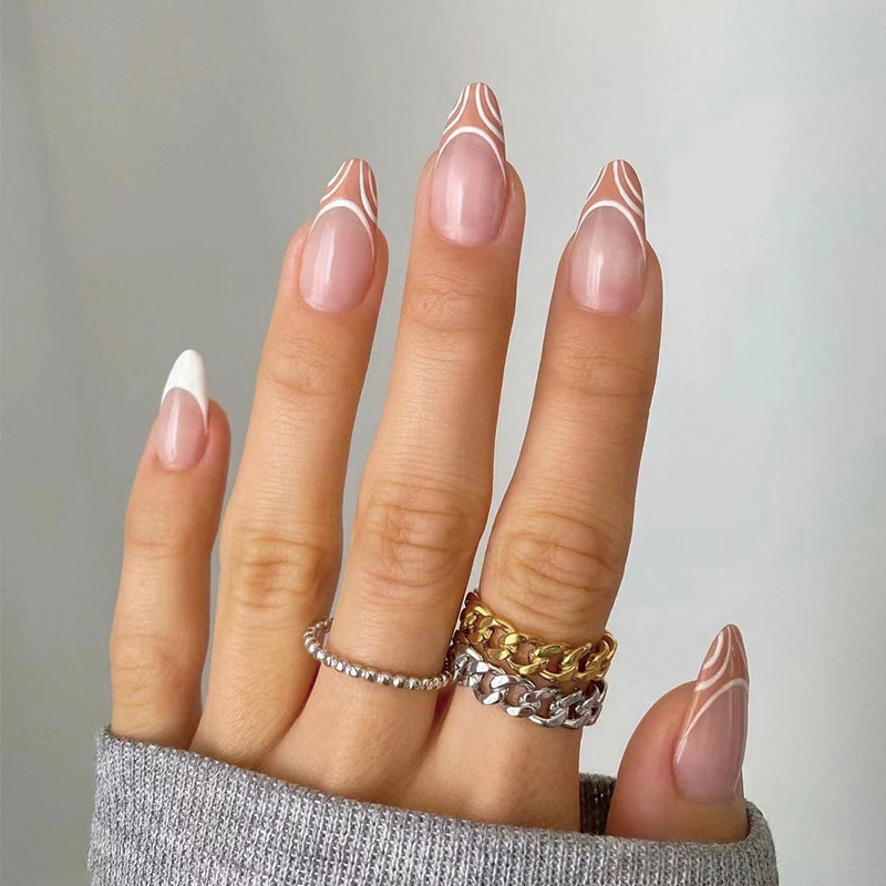 美甲穿戴甲批发中长款简约白棕法式美甲 穿戴甲穿戴美甲成品批发美甲穿戴甲批发中长款简约白棕法式美甲 穿戴甲穿戴美甲成品批发