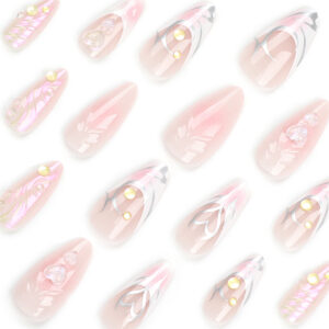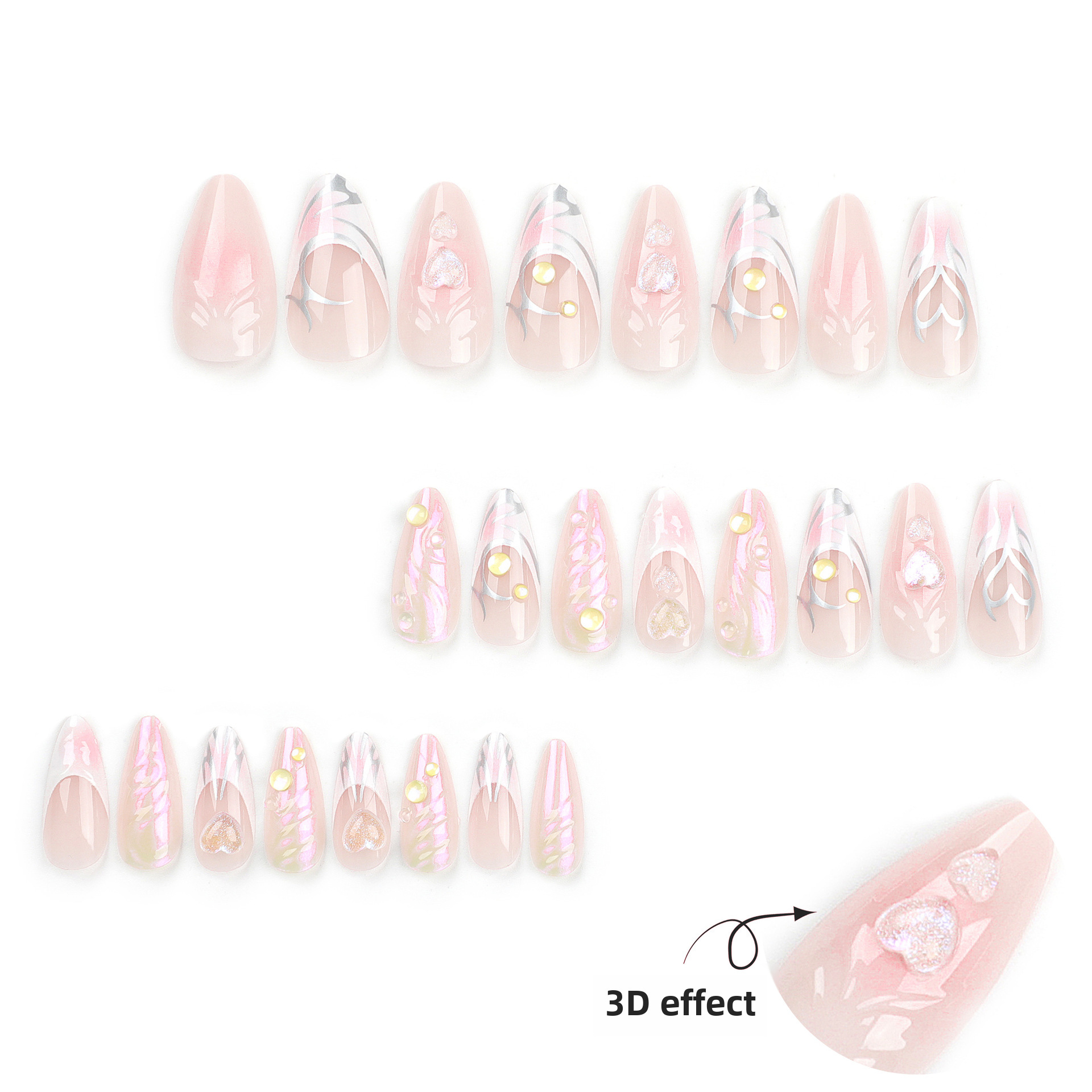 / 蜜桃爱心法式穿戴甲3D杏仁型假指甲人鱼泡泡珠美甲甲片成品批发