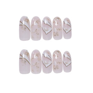 裸色山丘纹金粉长款穿戴甲成品假指甲美甲贴片指甲贴片防水可拆卸