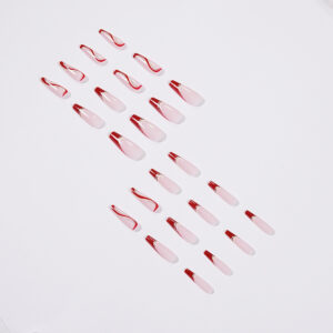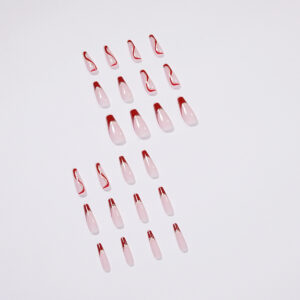 车厘子红法式穿戴甲波浪美甲拼色假指甲Press on nail穿戴甲 批发 quantidade