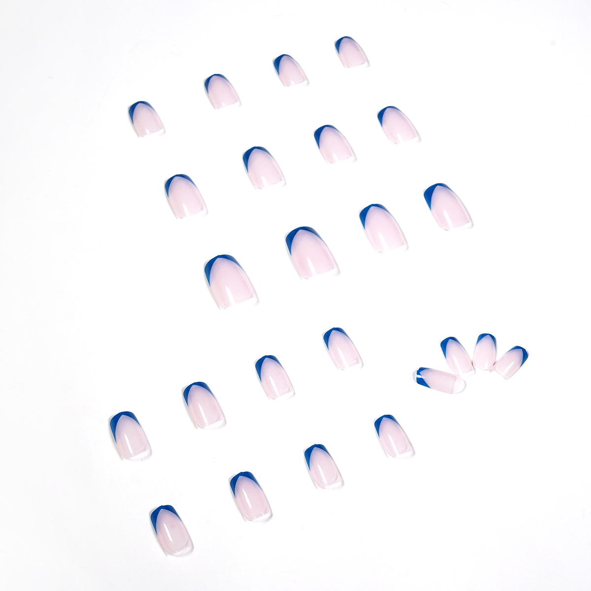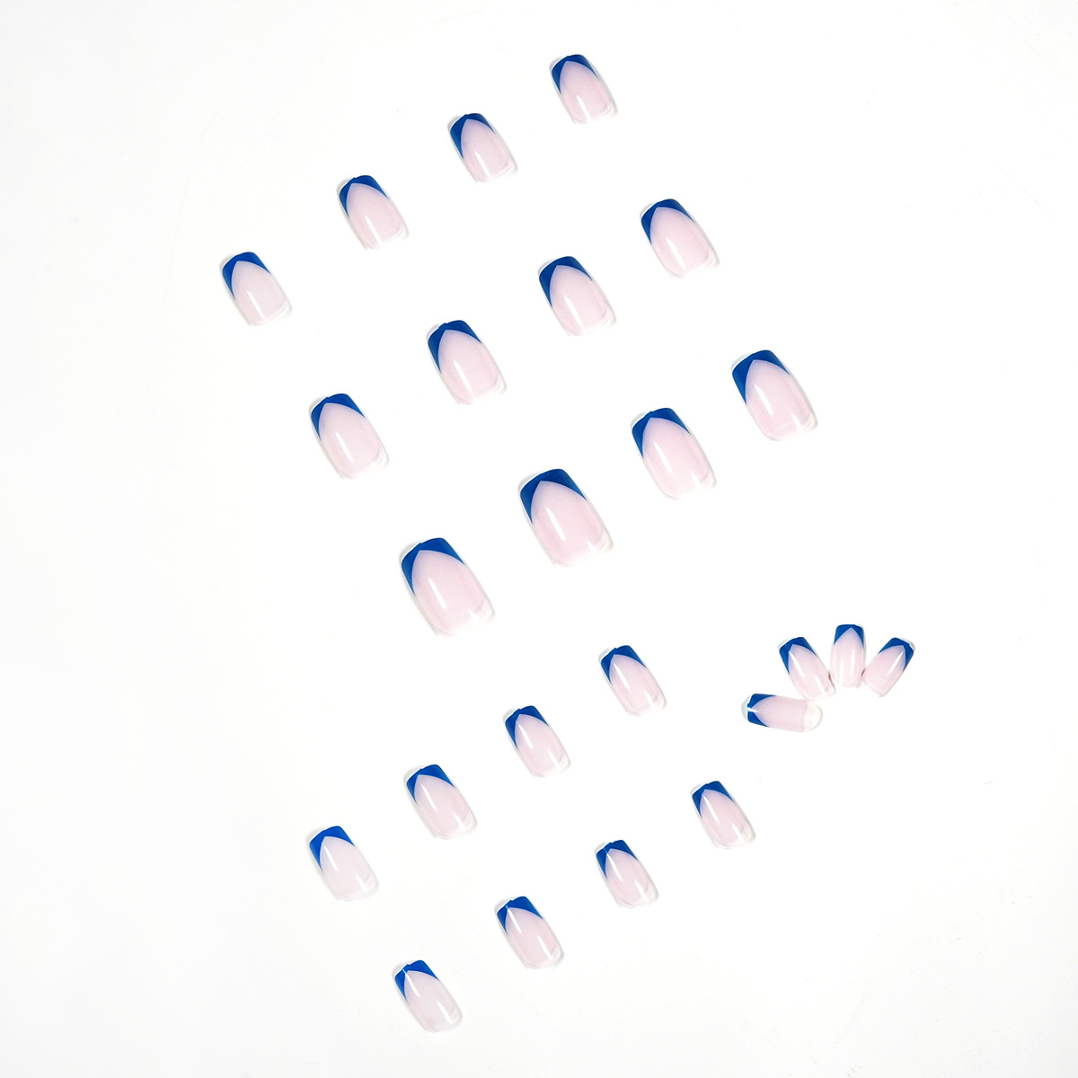 透色小v蓝法式穿戴美甲成品假指甲美甲贴片指甲贴片可拆卸甲片